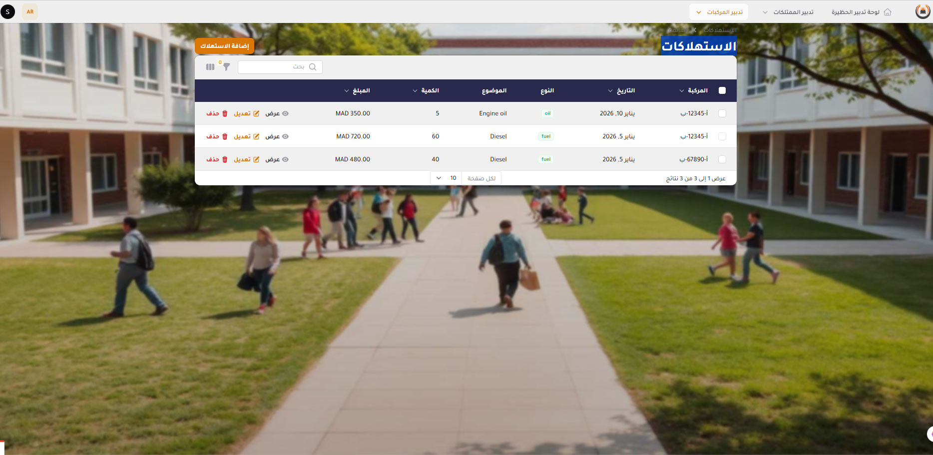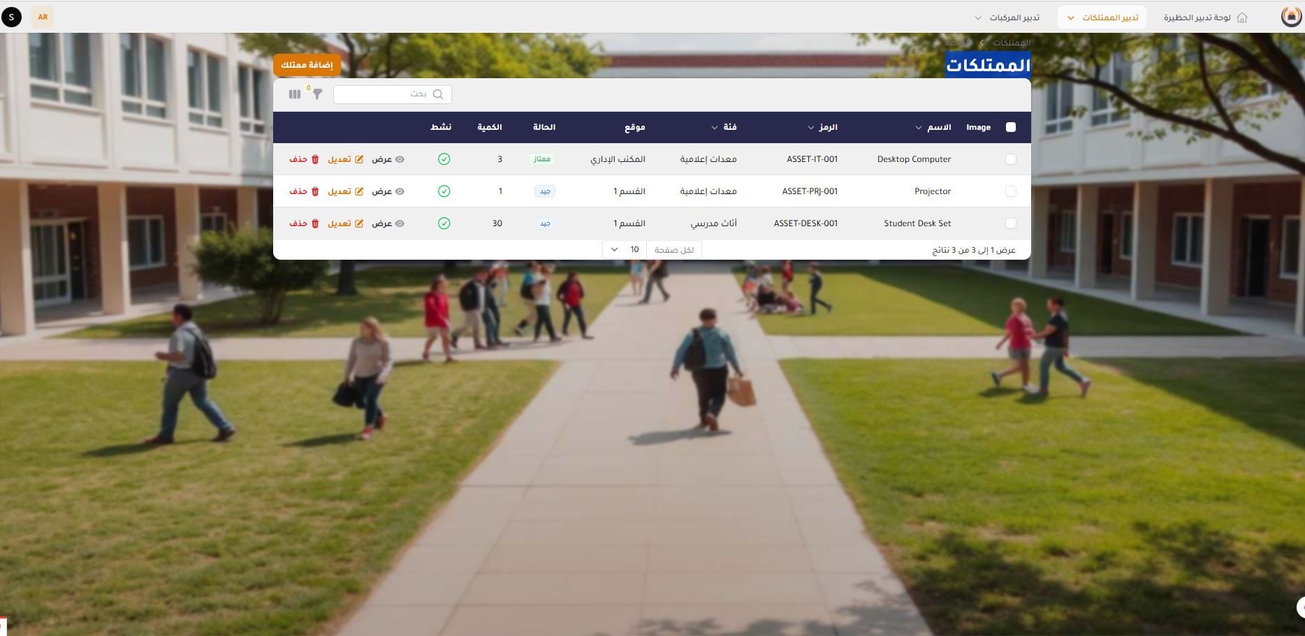 Le module Patrimoine d'.PSMA. Maroc offre un inventaire centralisé de toutes les ressources physiques de l'établissement : salles de classe, véhicules de la flotte, équipements informatiques, mobilier et matériel pédagogique.
