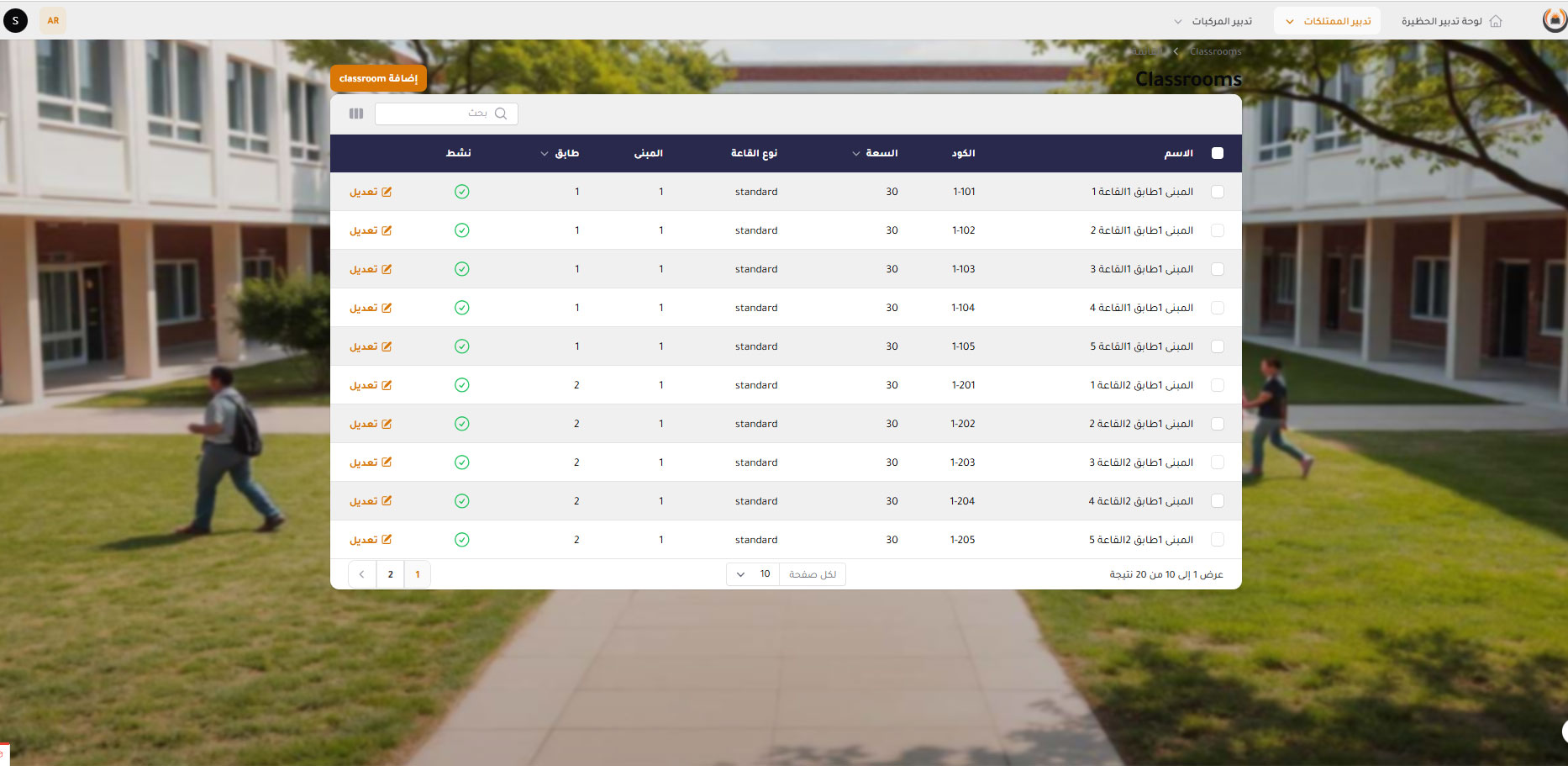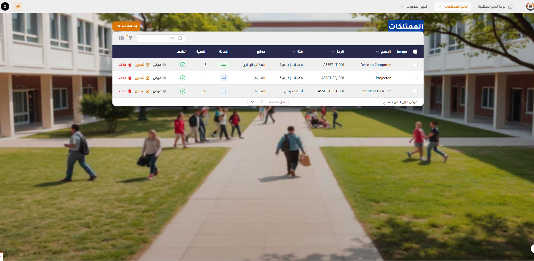 Le module Patrimoine d'.PSMA. Maroc offre un inventaire centralisé de toutes les ressources physiques de l'établissement : salles de classe, véhicules de la flotte, équipements informatiques, mobilier et matériel pédagogique.